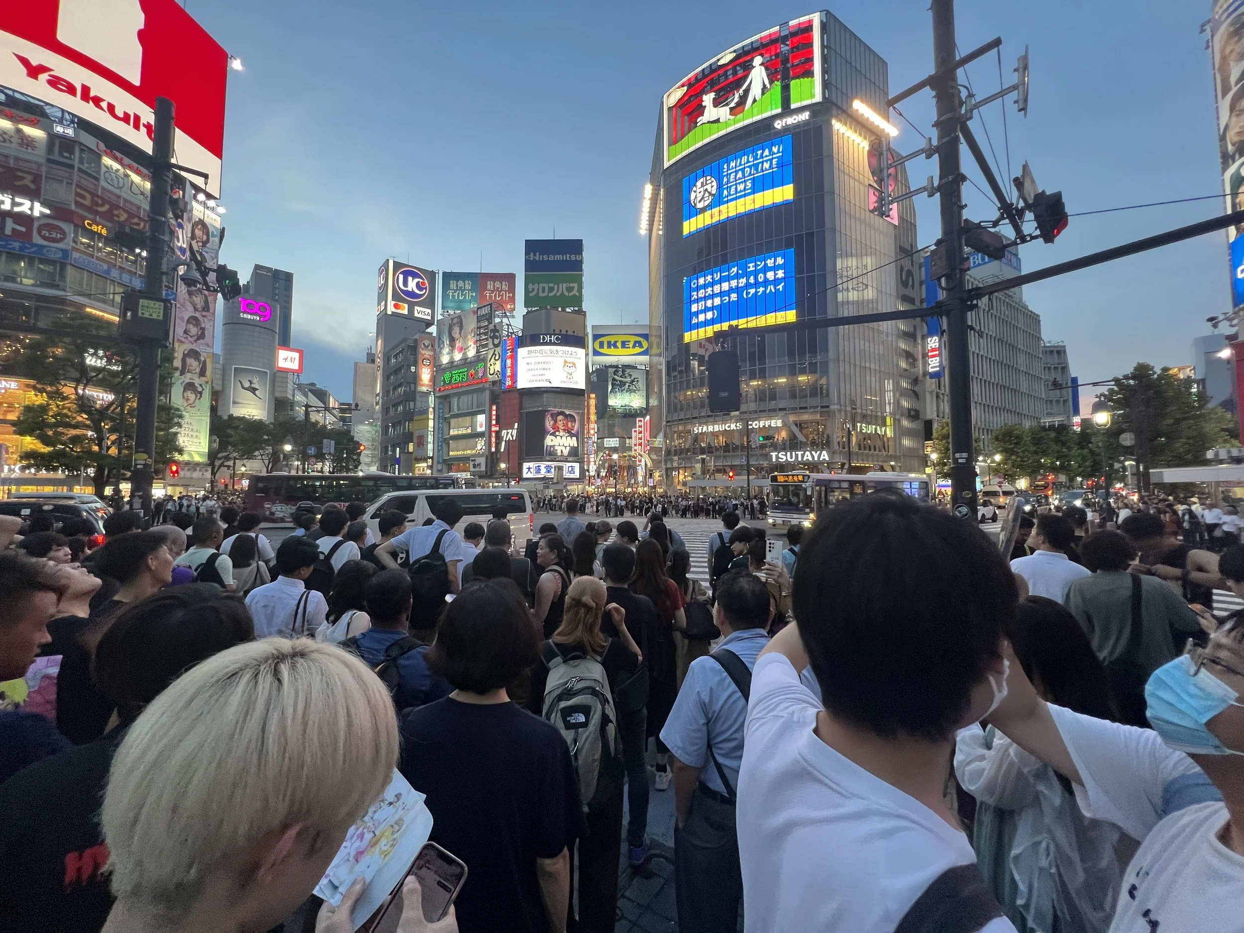 The Shibuya Scramble! Where other areas of the city may seem almost devoid of life, this place certainly was not. It seems that the crossing only has notoriety because it has reached a certain critical mass where almost everyone making the crossing is there just to see everyone else around them crossing too. It is doubtful to me that people are using it as a means to actually commute someplace, rather just be part of this human experience.